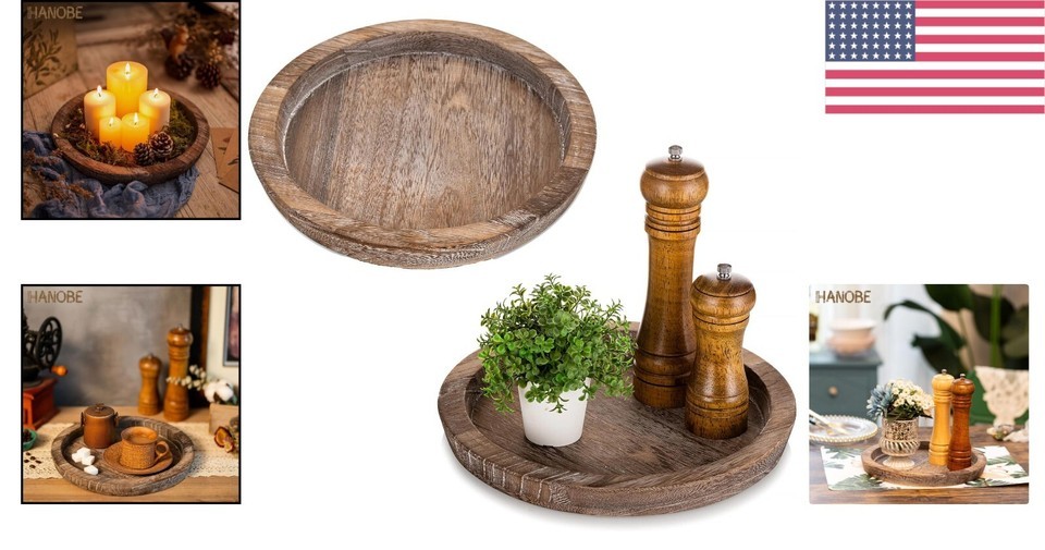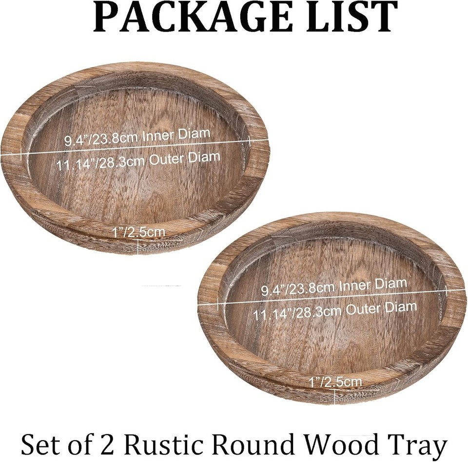 Multi-Purpose Round Serving Trays - Stylish Distressed Wooden Decor Set of 2
