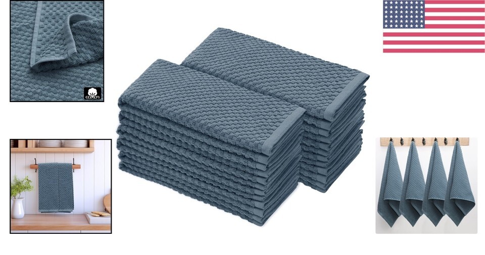 Stylish 100% Cotton Kitchen Towel Set - 12 Pack of Quick-Dry Waffle Weave Cloths