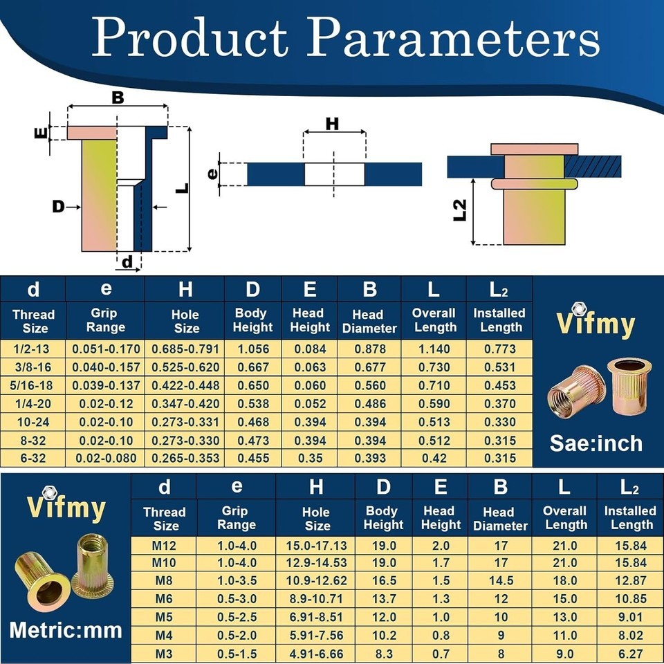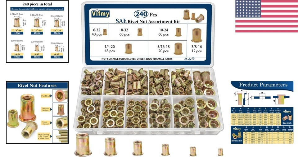 Transform your DIY projects with our Professional SAE Rivet Nut Assortment, a meticulously curated selection tailored for both enthusiasts and professionals alike. Whether you?re working on furniture, appliances, bicycles, or manufacturing needs, our high-quality rivets offer remarkable strength and durability. Engineered with corrosion-resistant plating, these rivet nuts ensure your projects maintain integrity over time.