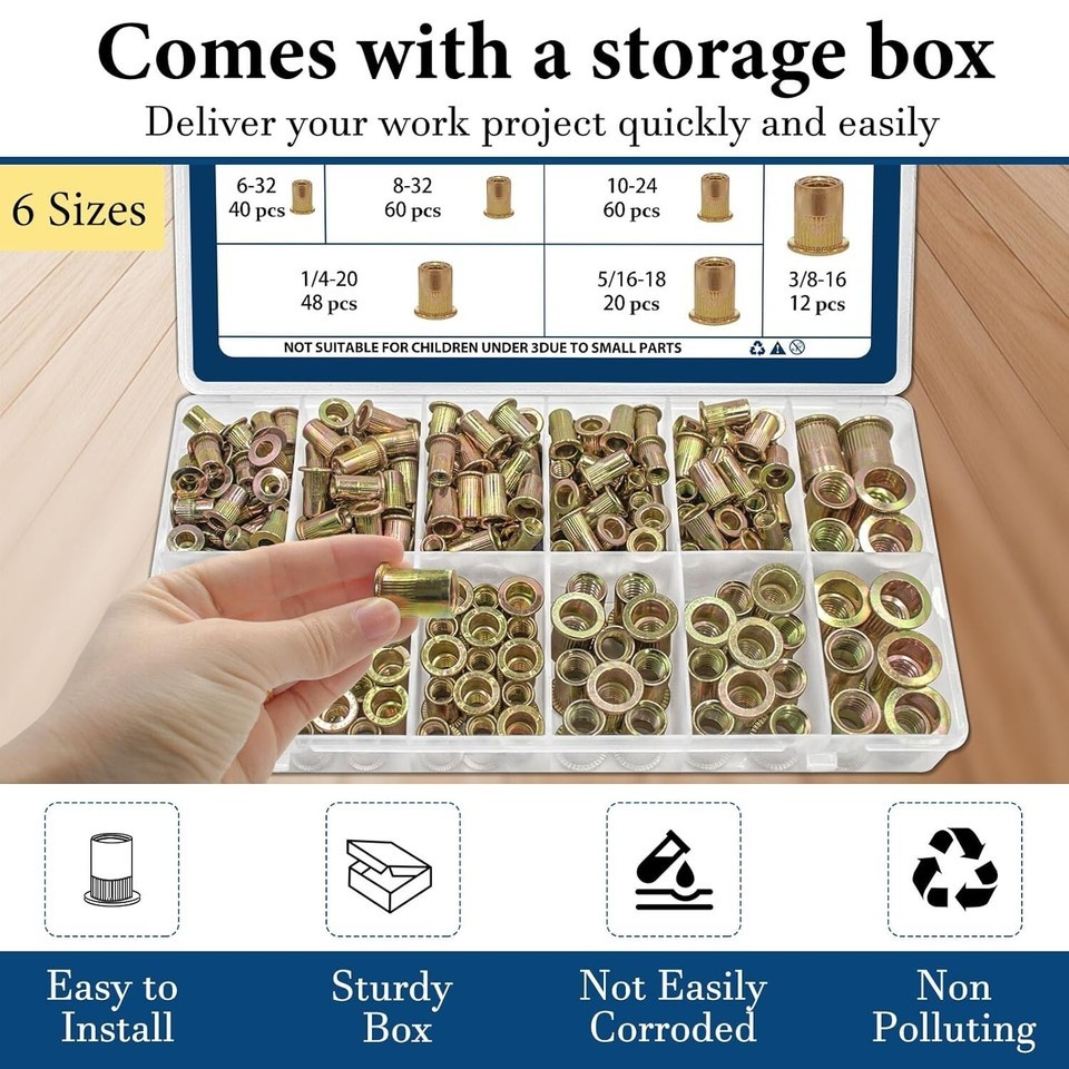Professional SAE Rivet Nut Assortment - 6 Sizes, Ideal for DIY Projects