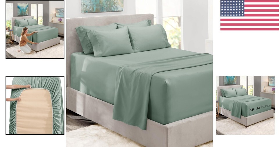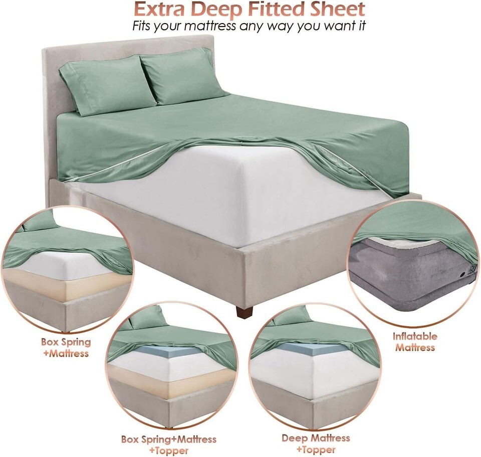 1800 Thread Count Sage Green Full Size Sheets - Deep Pocket for Ultimate Comfort