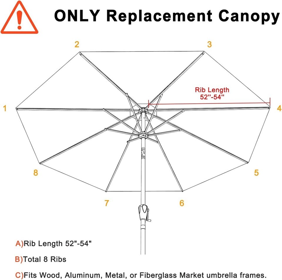 Perfect Compatibility: Tailored for 8 ribs, ensuring a perfect fit as the measurements for each rib range from 52 - 54 inches.