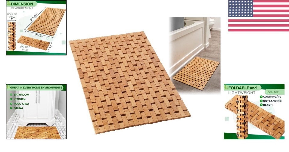 Durable Bamboo Bath Mat [24x16] ? Foldable, Easy-Clean Beauty for Your Bathroom