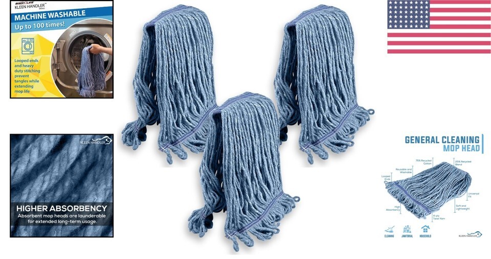 Includes three medium 16 oz. mop heads, featuring a robust 4-ply twist yarn blend of cotton and synthetic fibers.