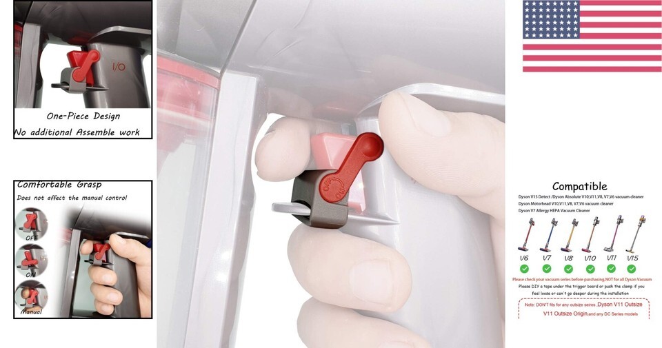 Transform your vacuuming experience with our Compatible Trigger Lock Clamp designed specifically for your Dyson cordless vacuum cleaner. With its innovative finger relief design, this clamp frees you from the strain of constantly pressing the on button, allowing you to glide through your chores with ease.