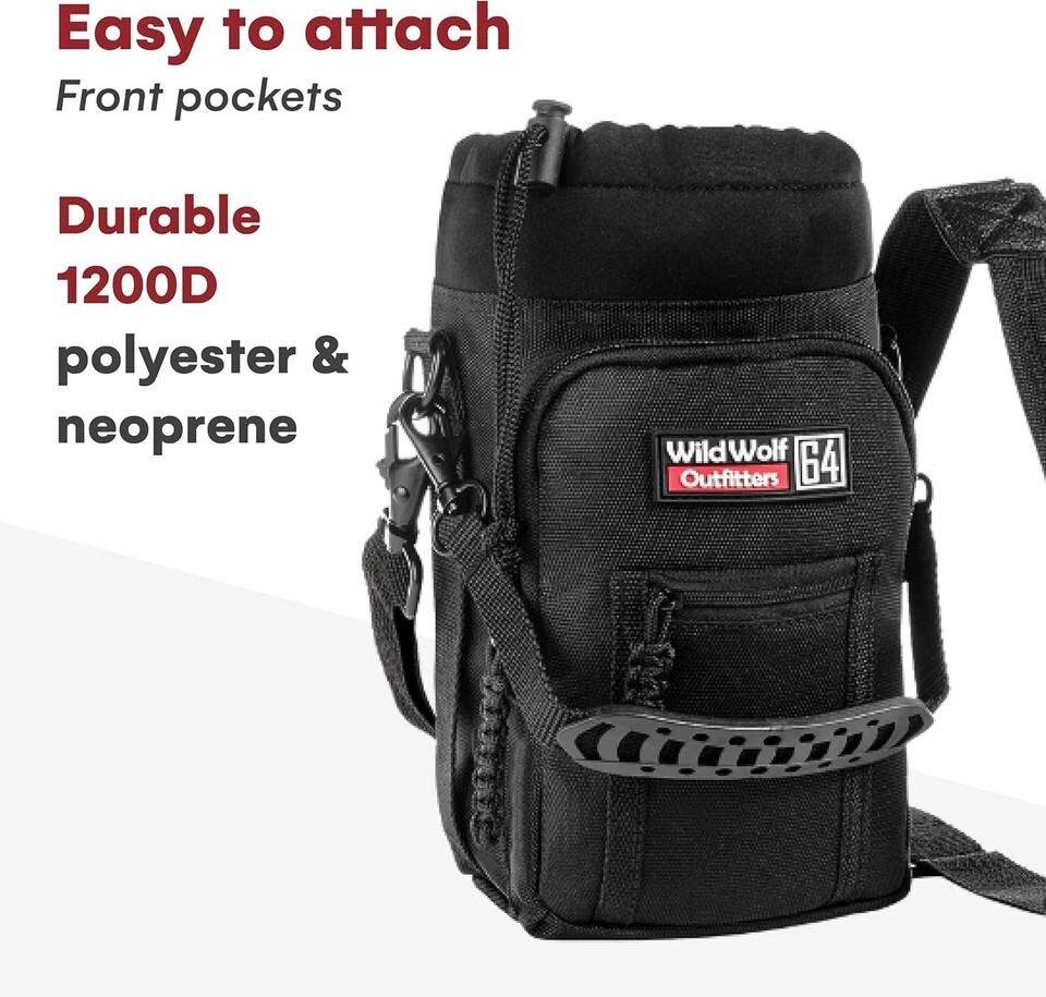 Transform your water bottle holder into a mini backpack. Keep all essential items within reach while hiking, traveling, or at the gym. Our sling is designed to snugly accommodate most 40oz flasks, freeing your hands for life's bigger challenges.