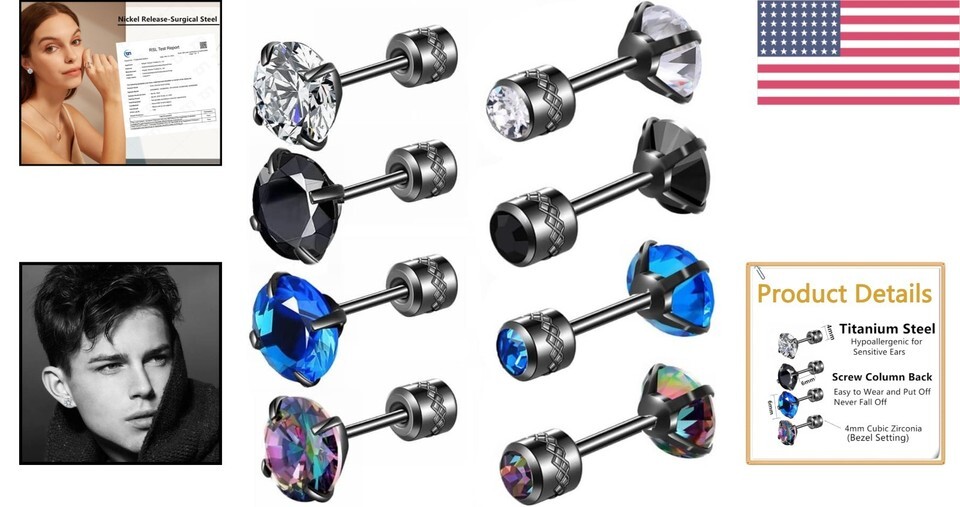 Nickel-Free, Hypoallergenic, Screw Back, Secure, Lightweight |