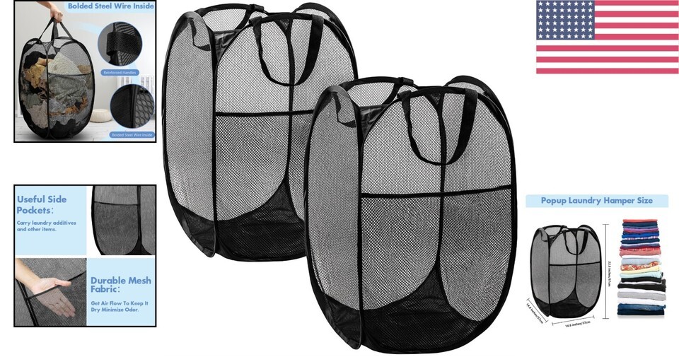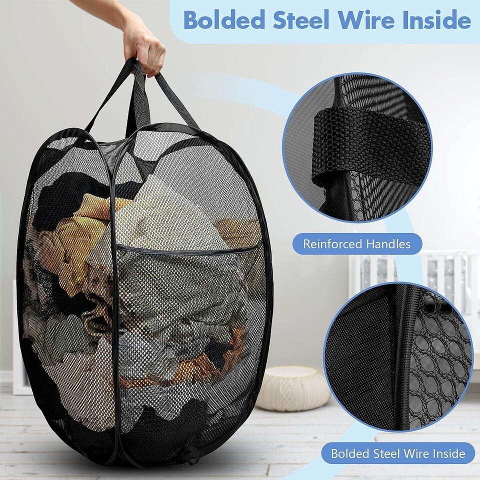 Effortless Organization with 2 PCS Pop Up Mesh Laundry Hampers - 70L Capacity