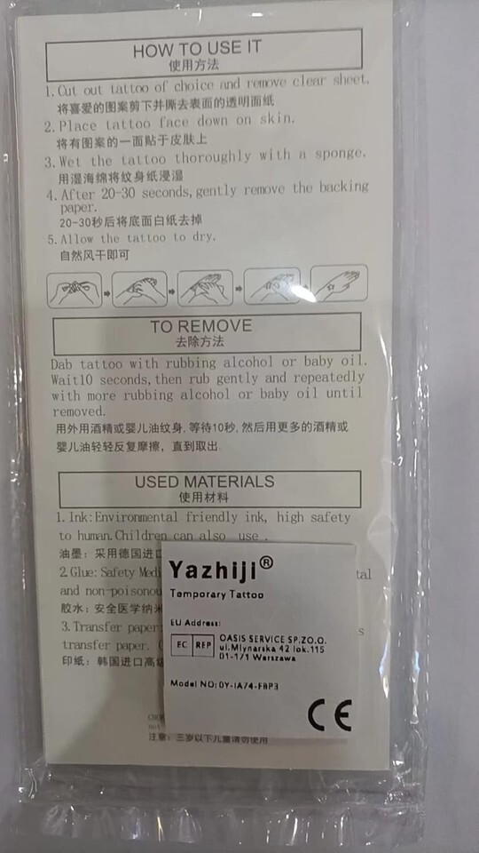 Simple Application: Applying your temporary tattoo is a breeze! Just remove the clear film, place it on clean, dry skin, dab with a damp towel, and let it dry. It?s that simple!