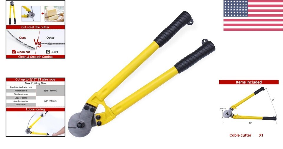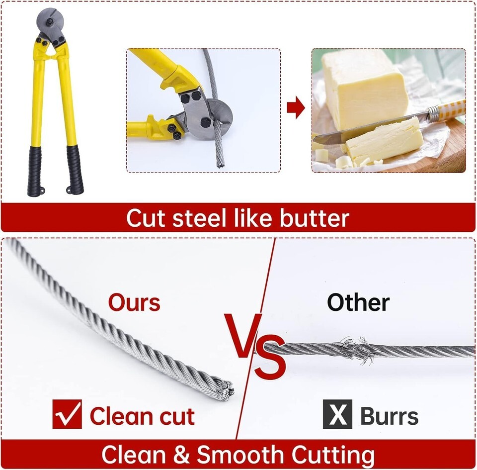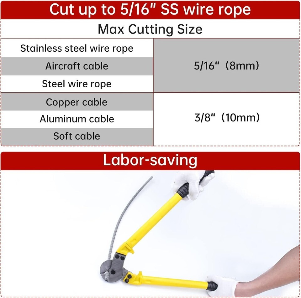 Optimal Cutting Capability: Effortlessly cuts through 1/4" stainless steel cable or galvanized aircraft wire rope cable.