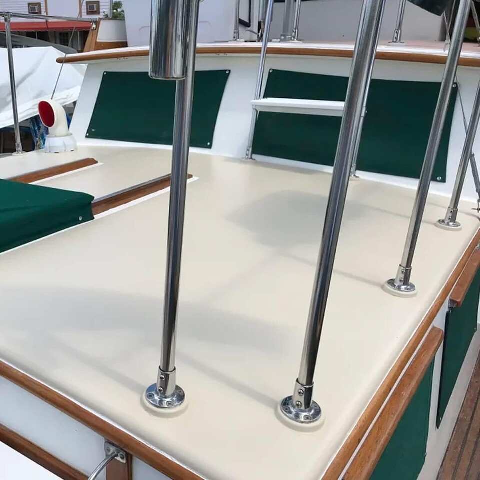 Non-Skid Deck Paint: Features a durable, textured surface that provides secure footing, with a soft rubberized texture that is gentler on the feet compared to traditional silica alternatives.