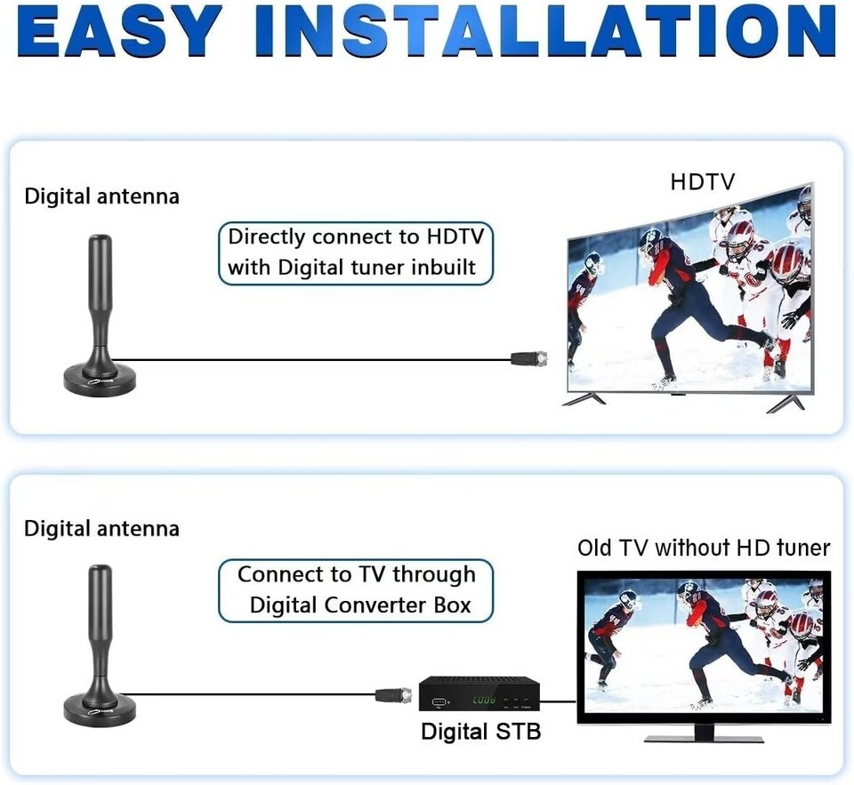 Magnetic Base Indoor HDTV Antenna - Up to 150 Mile Range, Perfect for Smart TVs
