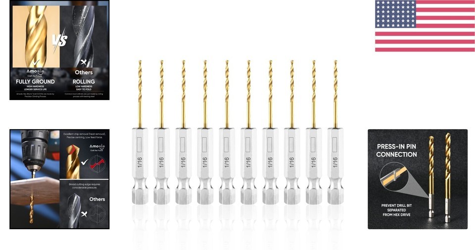 High-Precision 10-Pcs Titanium Drill Bit Set with Hex Shank Chatter Reduction