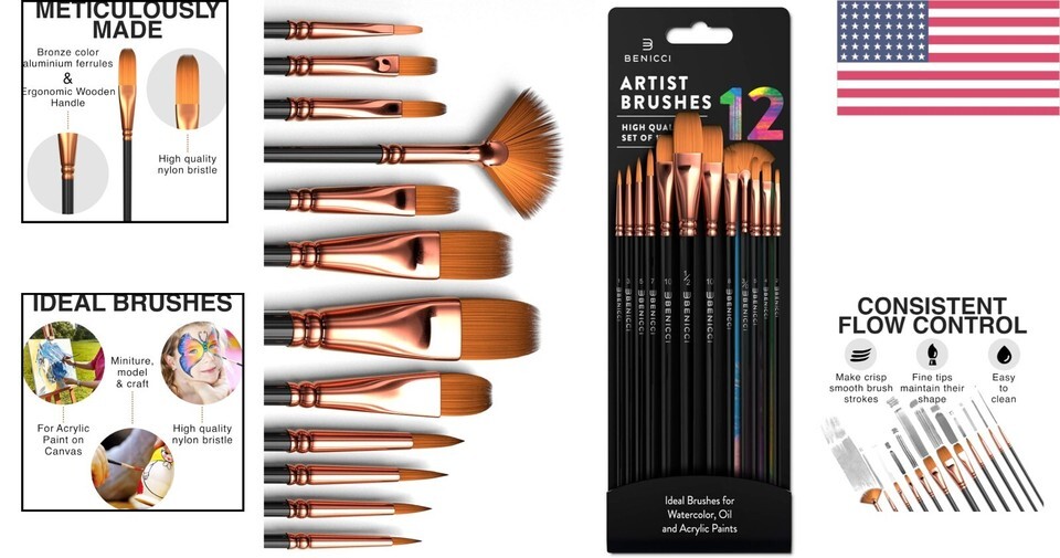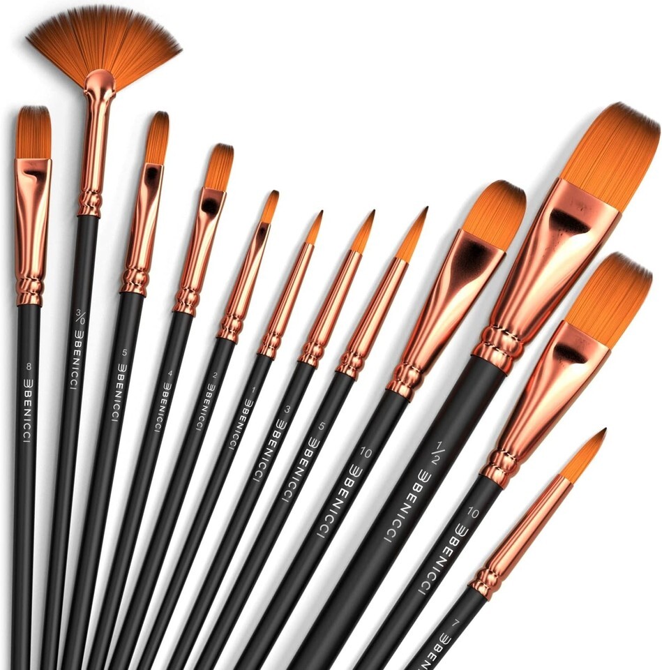 Premium 12 Brush Set - Ergonomic Design for Watercolor, Oil & Acrylic Painting