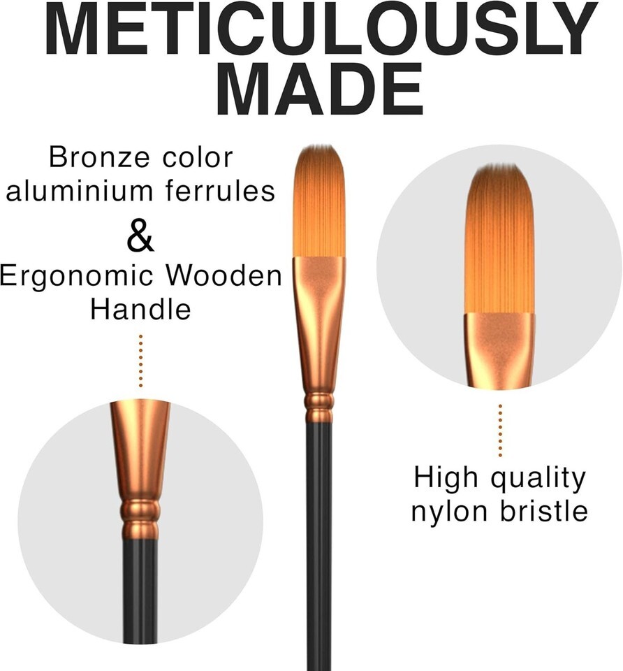 Unleash your creativity with our Premium 12 Brush Set, designed to cater to artists of all levels. The ergonomic handles ensure comfort during prolonged usage, while the varied brush shapes allow for precision and versatility in every stroke. Whether you are painting a serene watercolor landscape, vibrant acrylic abstract, or classic oil portrait, these brushes are your perfect companions.