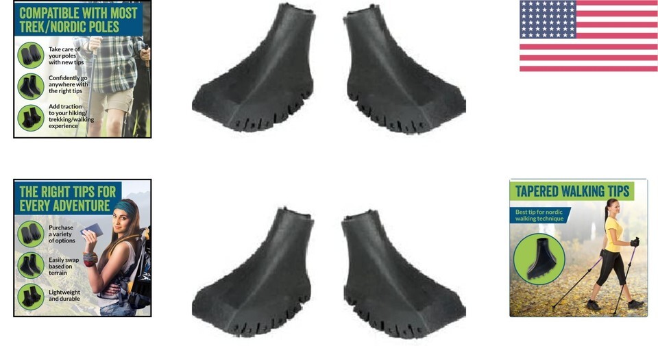 Universal 4-Pack Rubber Replacement Feet for Hiking & Nordic Walking Poles