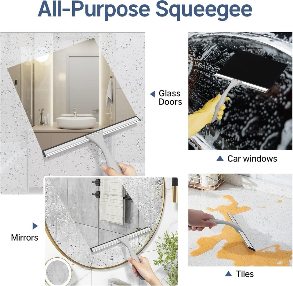 All-Purpose Squeegee: The expansive silicone blade sweeps away water and foam effortlessly, ideal for shower doors, windows, mirrors, tiles, car windows, and other smooth surfaces.