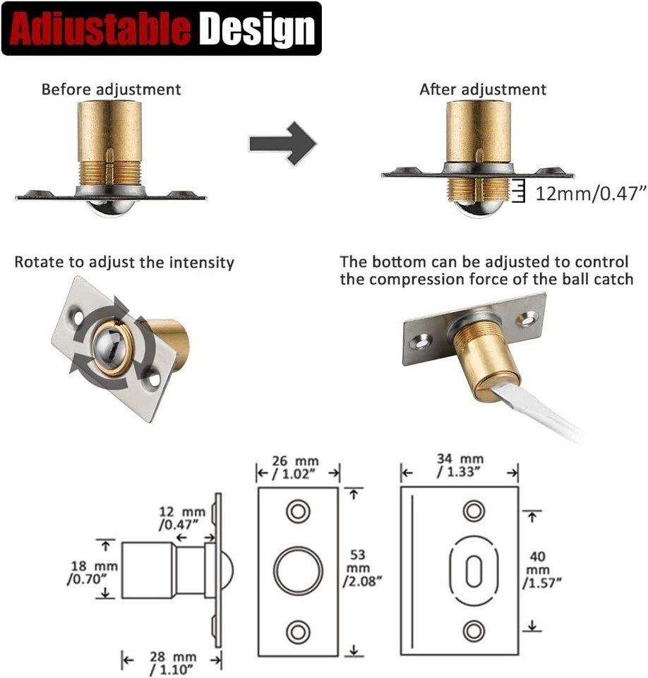 Universal Fit: 10 mm adjustable ball catch with a screw hole distance of 40 mm makes it a versatile replacement hardware for various installations.