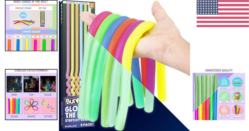 With over 2 million sold, our Glow in the Dark Stretchy Strings are a crowd favorite?the perfect party favor that guarantees hours of fun and creativity for kids. Illuminate your playtime and ignite imagination today!