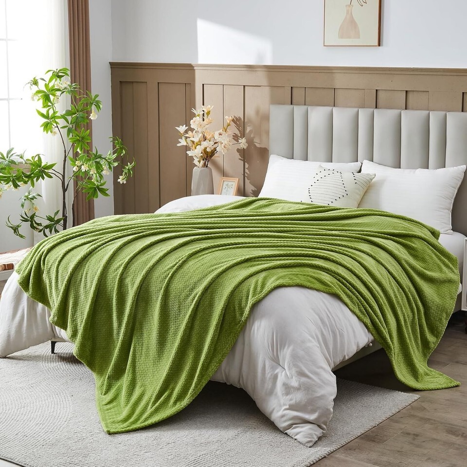 Reversible Lightweight King Fleece Blanket with Leaves Pattern - Green Elegance