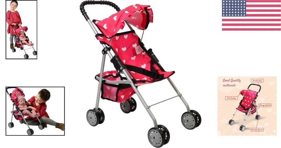 Adorable Pink Doll Stroller with Double Wheels Foldable Basket - 18" Fit