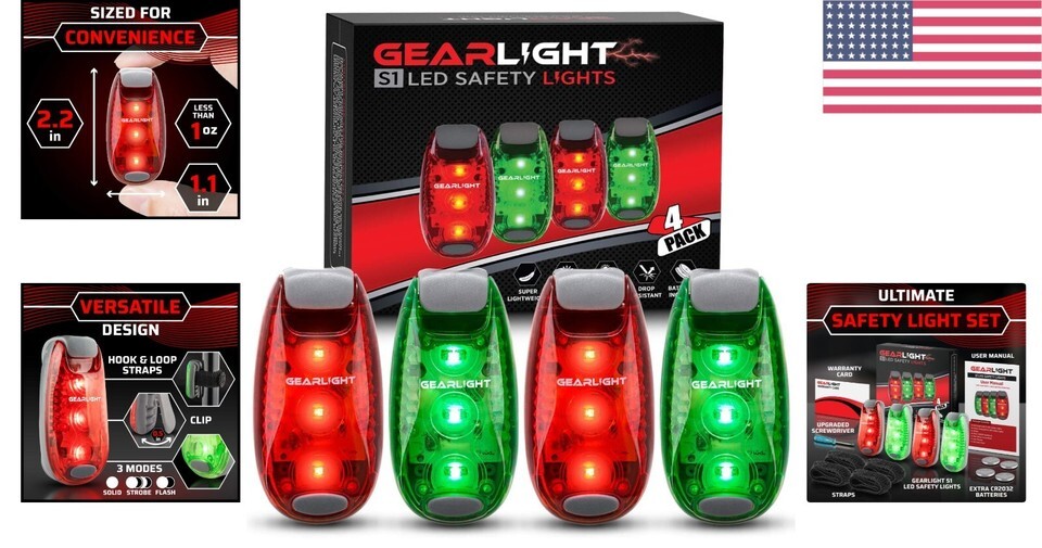 Excellent 4-Pack Value: Comes with 2x Red + 2x Green S1 Safety Lights, preinstalled batteries, plus 4 extra CR2032 batteries, 4 straps, and a mini screwdriver for easy battery changes.