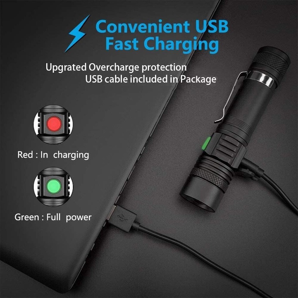 With the latest technology and compact design, this tactical flashlight stands out in its class. Experience exceptional brightness that easily illuminates an entire room or reaches objects up to 600 feet away. The USB rechargeable feature makes it easy to power up anywhere?whether you're in the office, on the road, or enjoying the great outdoors.