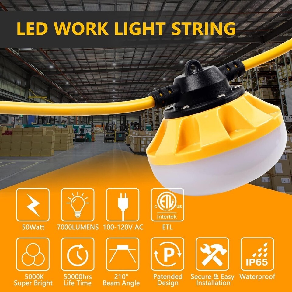 5000 Lumen 50FT LED String Lights with Hooks - Perfect for Construction Projects