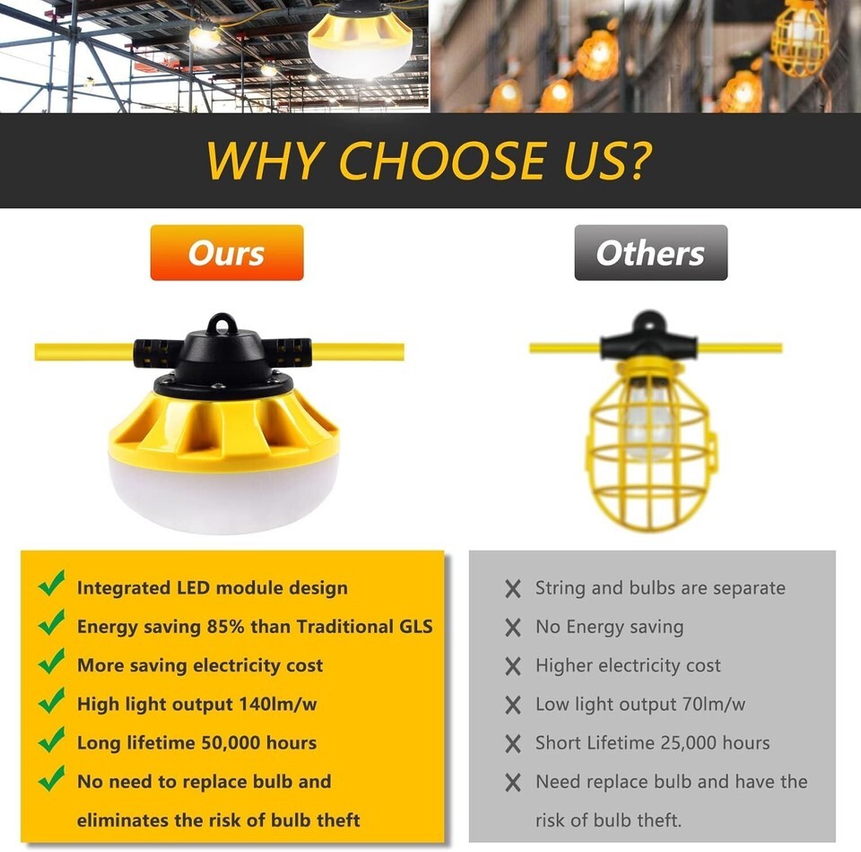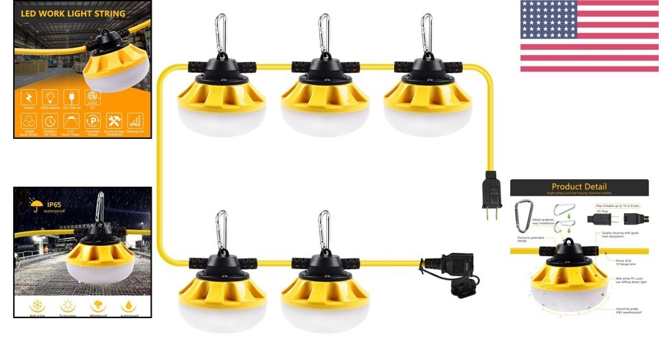 Choose our 5000 Lumen LED String Lights and experience unparalleled brightness and convenience for construction projects and more. Offering an innovative replacement for traditional incandescent lights, our product ensures safety and performance. The lightweight and flexible design cater to any setting, while the high durability means you won?t have to worry about fragile bulbs.