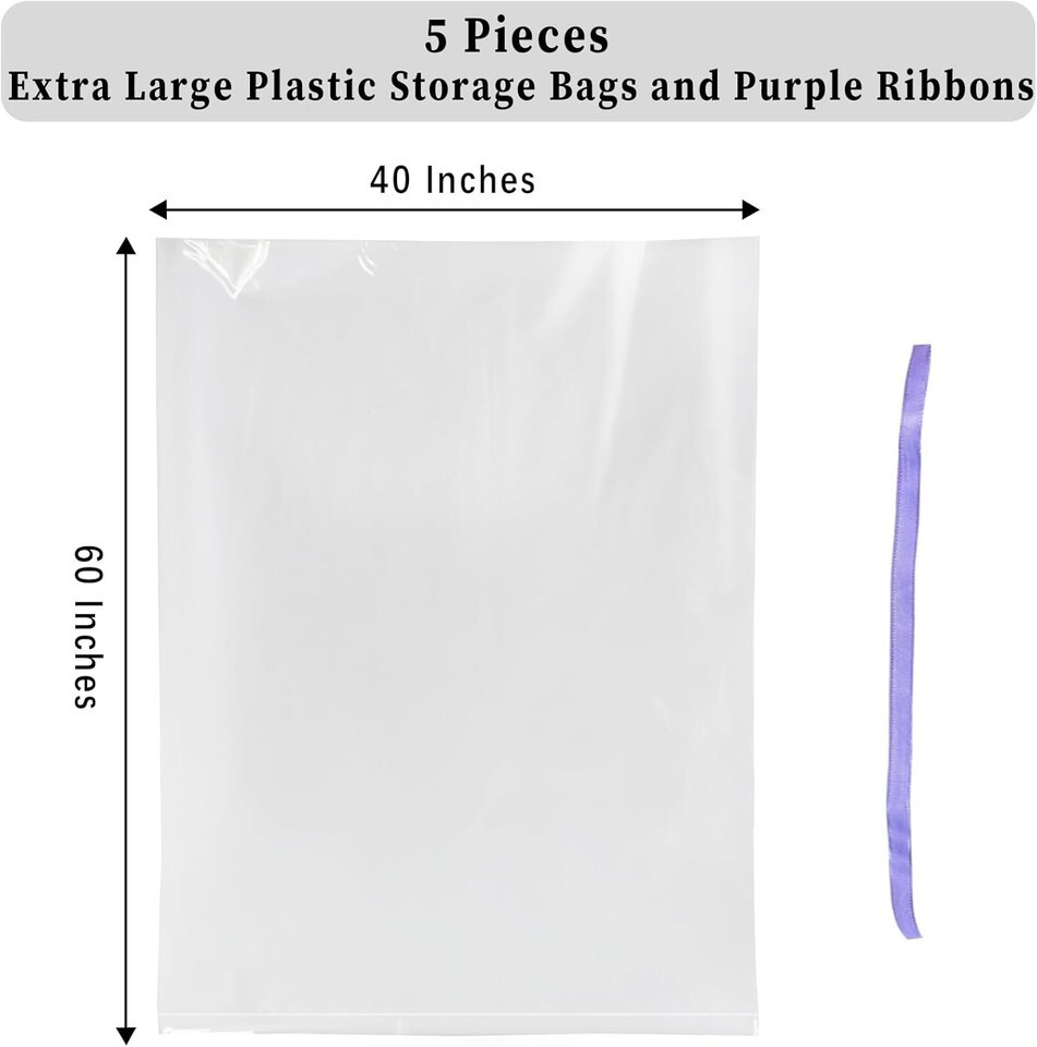 Large Capacity: Each package includes 5 extra large storage bags (40x60 inches) and 5 ribbons for effortless sealing.