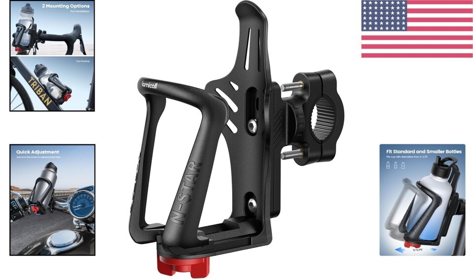 Secure Bike Bottle Holder - Fits All 2-2.75" Diameter Bottles, Easy Installation