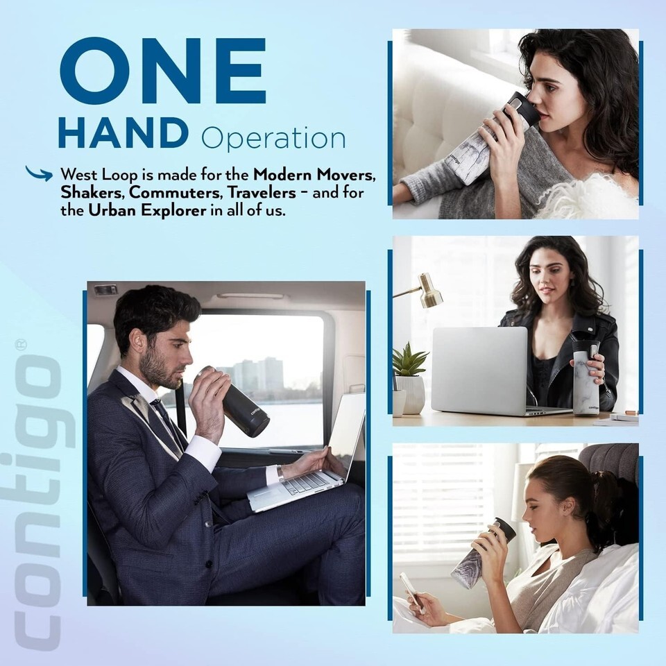 Leak-Proof Stainless Steel Travel Mug with Auto Seal - 470ml Insulated Design