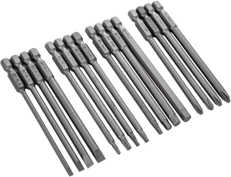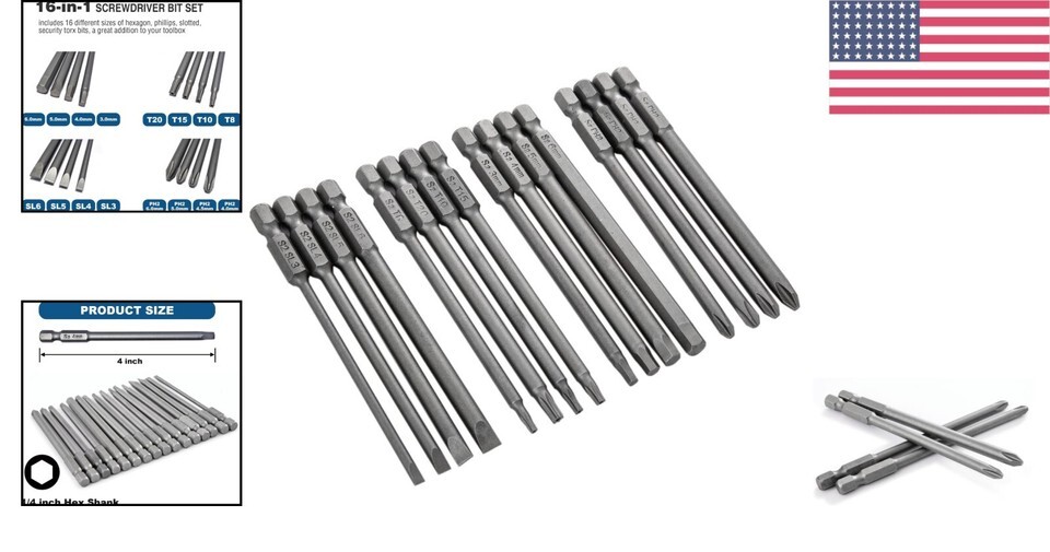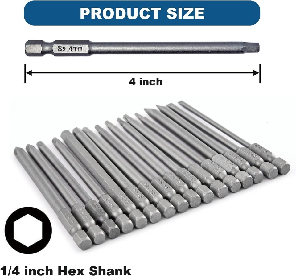Durable 4-Inch Magnetic Screwdriver Bits Set with Hex, Phillips, Torx Heads