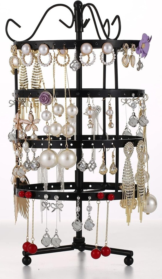 Holds 72 Pairs: 144 Holes for Earrings - Metal Four-layer Earrings Organizer Rotating Pedestal. Perfectly designed for optimal jewelry storage and display.