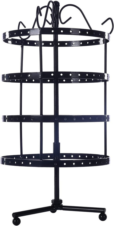 Transform your jewelry storage with our elegant Black Metal Earring Holder. With a capacity to hold up to 72 pairs of earrings, this four-layer spinning display stand not only saves space but adds a decorative flair to your vanity or retail setting. Crafted with quality metal, it ensures stability and longevity, while its unique design captures the essence of stylish organization.