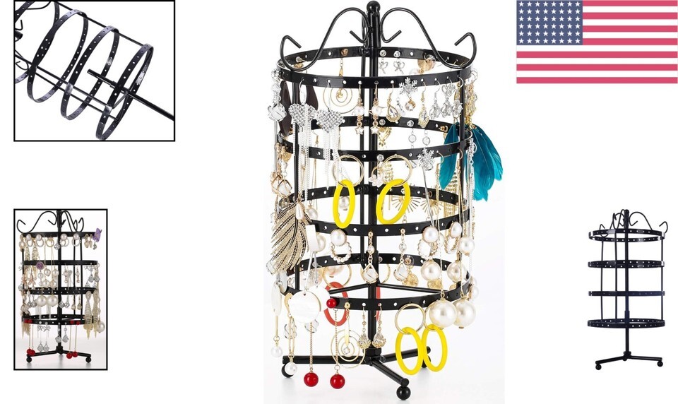 Black Metal Earring Holder with 144 Holes ? Stylish 360-degree Display Stand