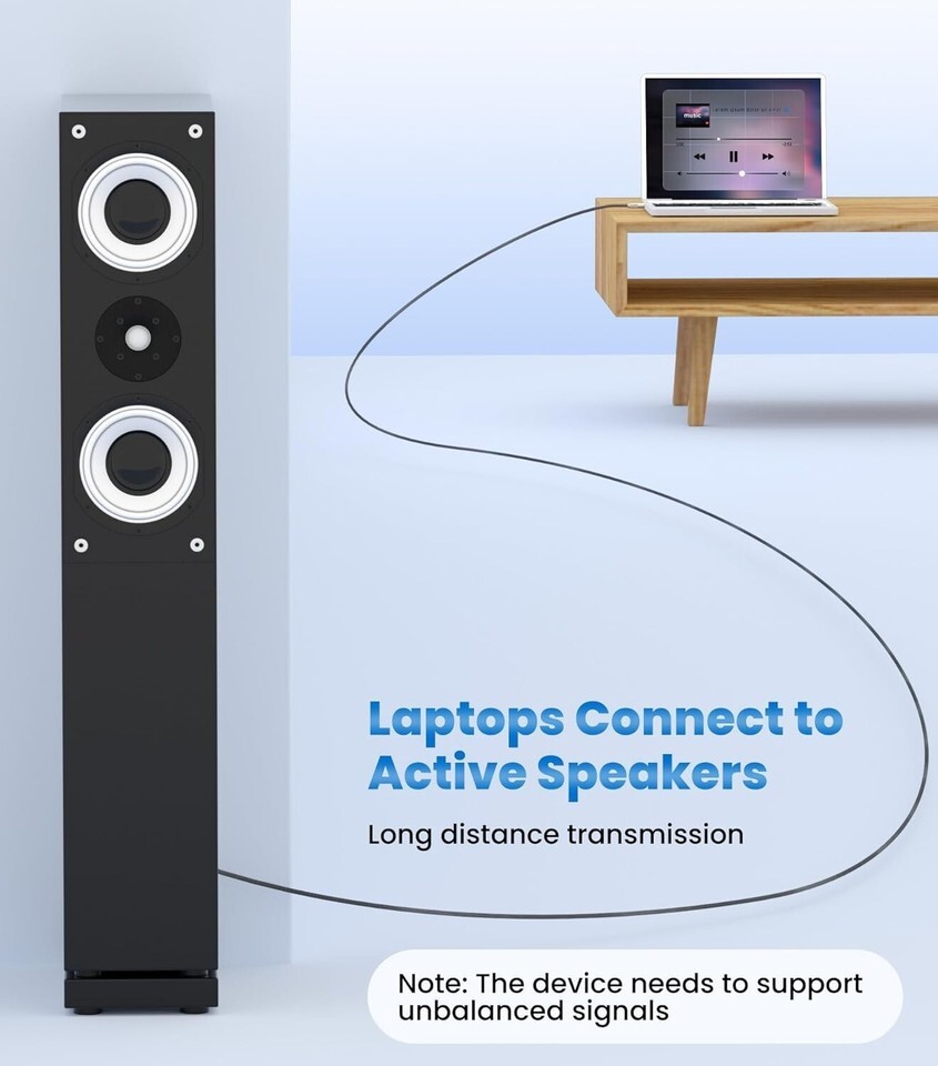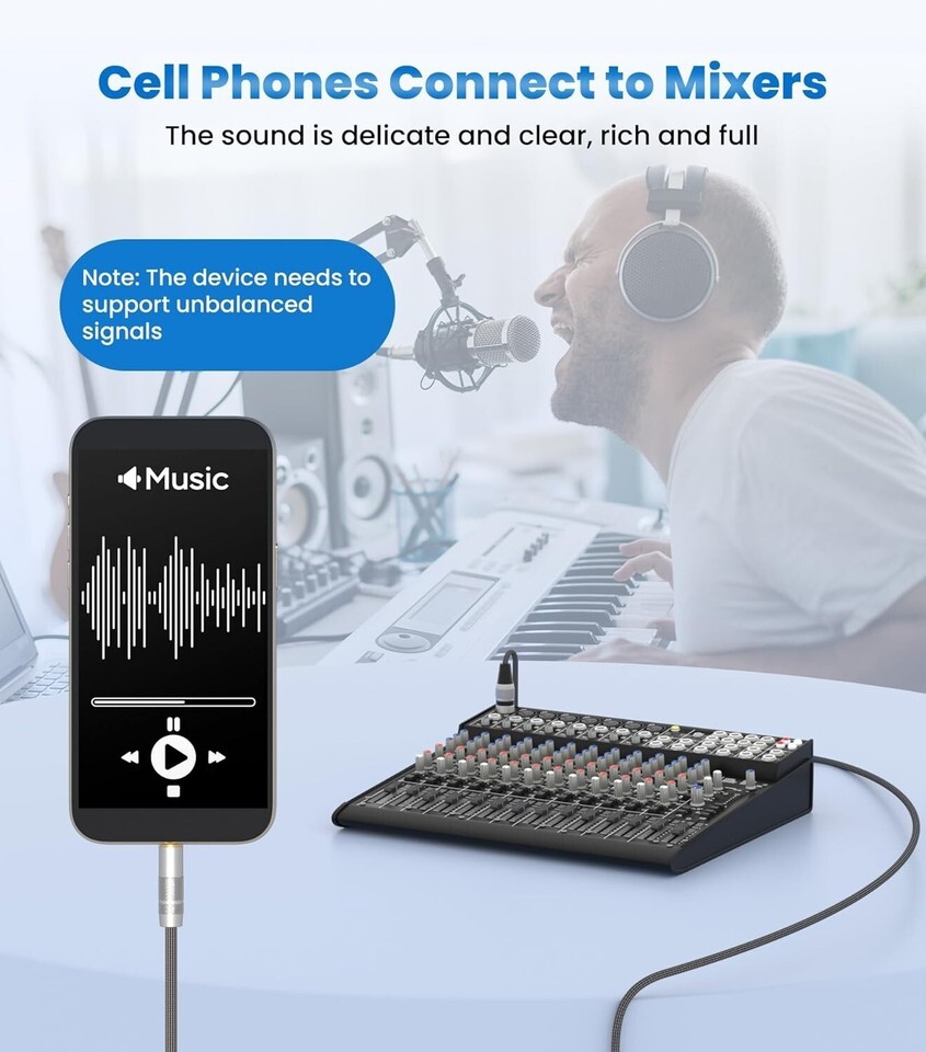 Seamlessly connect your cell phone, tablet, laptop, or voice recorder to mixing consoles or powered speakers.
