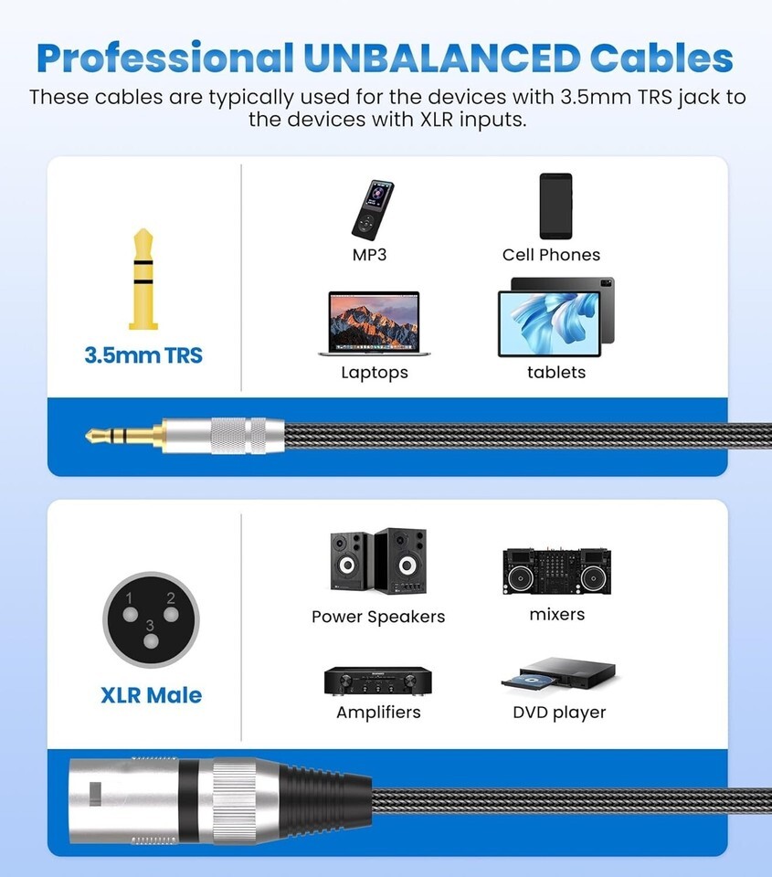 Premium 10ft 3.5mm to XLR Cable - Ideal for Recording & Live Performances