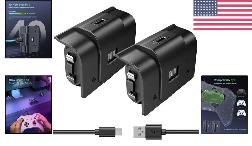 Dual 1400mAH Rechargeable Xbox Batteries with 40 Hours Playtime - Smart Charging