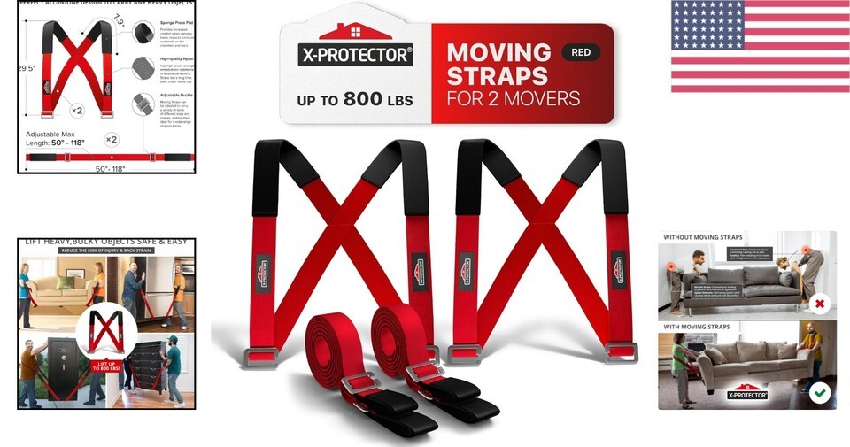 800 lb Capacity Lifting Straps for 2 Movers - Comfort & Safety for Heavy Items