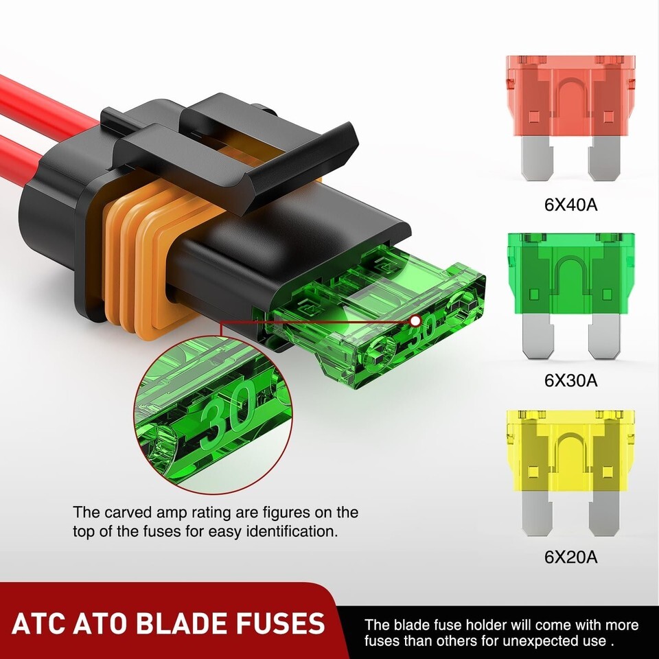 Includes 6 x 20A, 6 x 30A, and 6 x 40A blade fuses for your convenience.