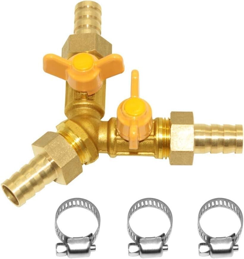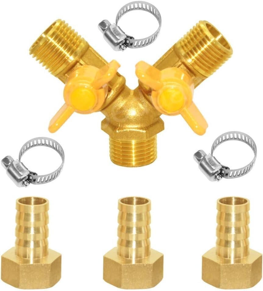 Includes 1 x 1/2" male Y valve, 3 x 1/2" female x 3/4" barb, 3 x hose clamps, and Teflon tape for an all-in-one solution.