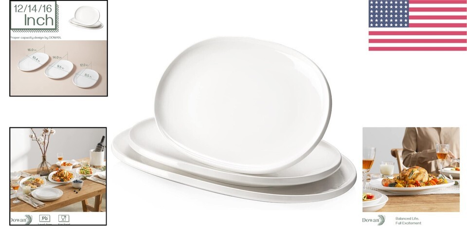 Durable and Safe: Crafted from high-quality porcelain, these platters are microwave, dishwasher, and oven safe. Made from 100% recyclable materials, ensuring a healthy choice for your family.