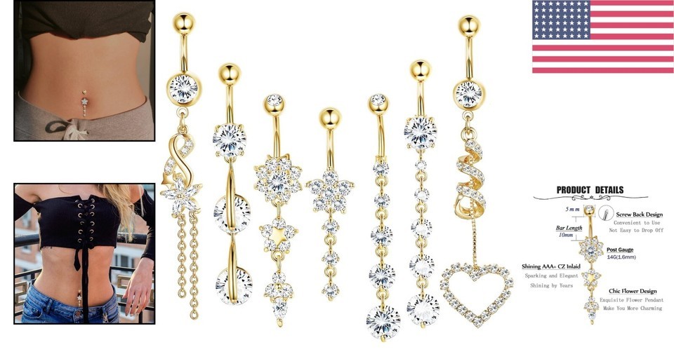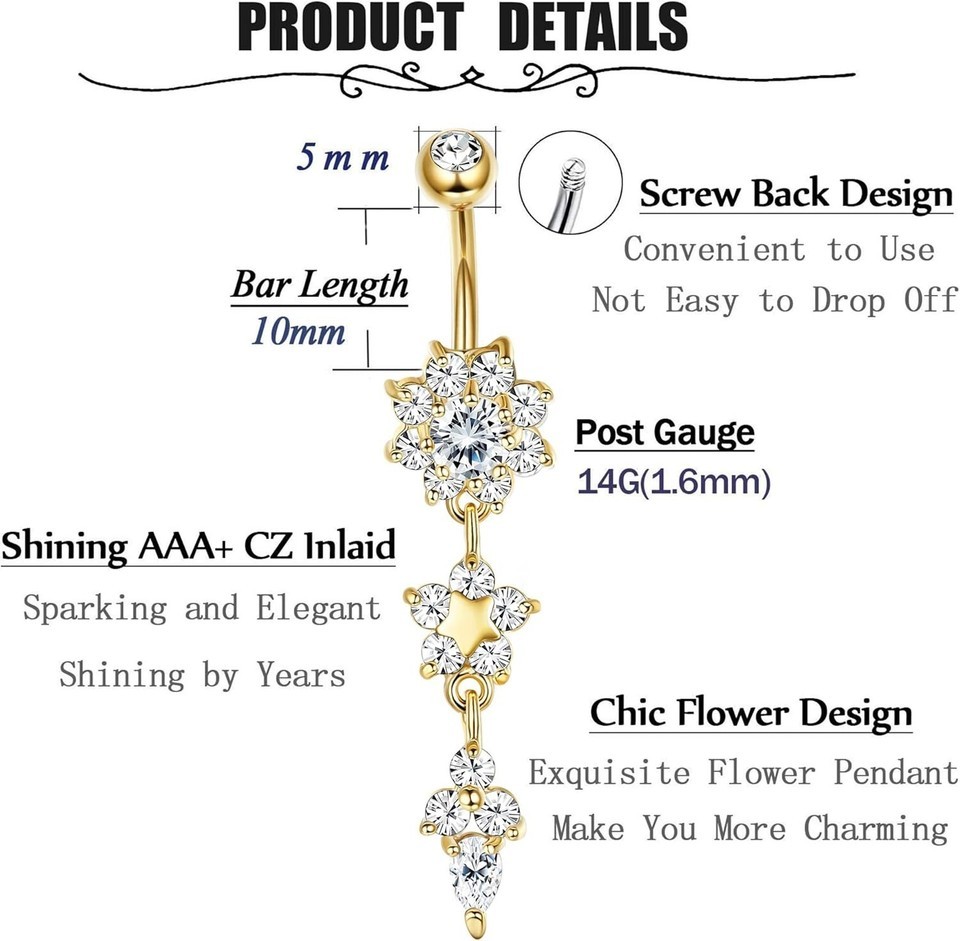 Embrace your allure and elevate your style with this captivating belly ring set. Make it yours today and enjoy the confidence that comes from wearing intricately designed, high-quality jewelry!