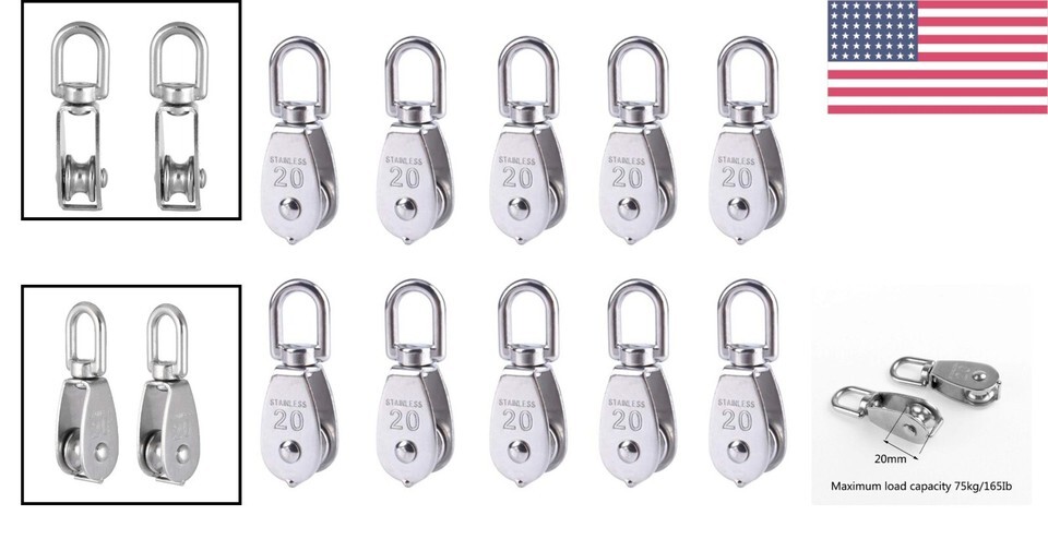 Heavy-Duty 10 Pcs Waterproof Stainless Steel Swivel Pulley Block M20 for Towing