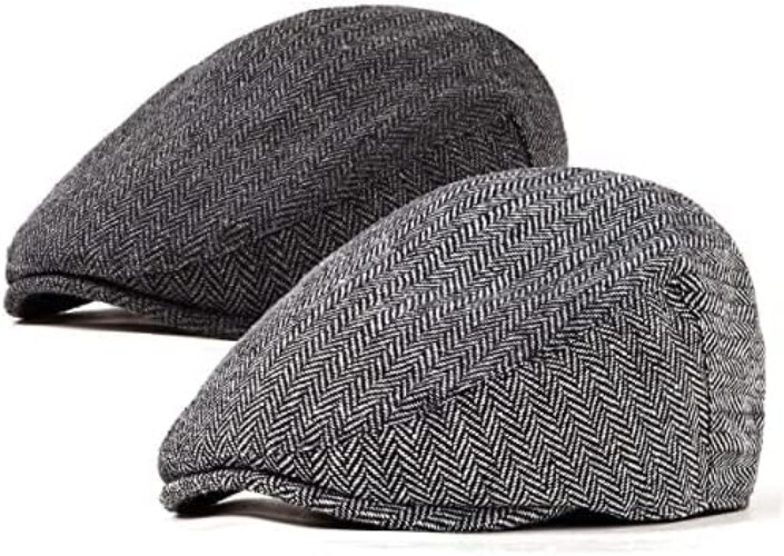 - 2 Warm Herringbone Tweed Caps