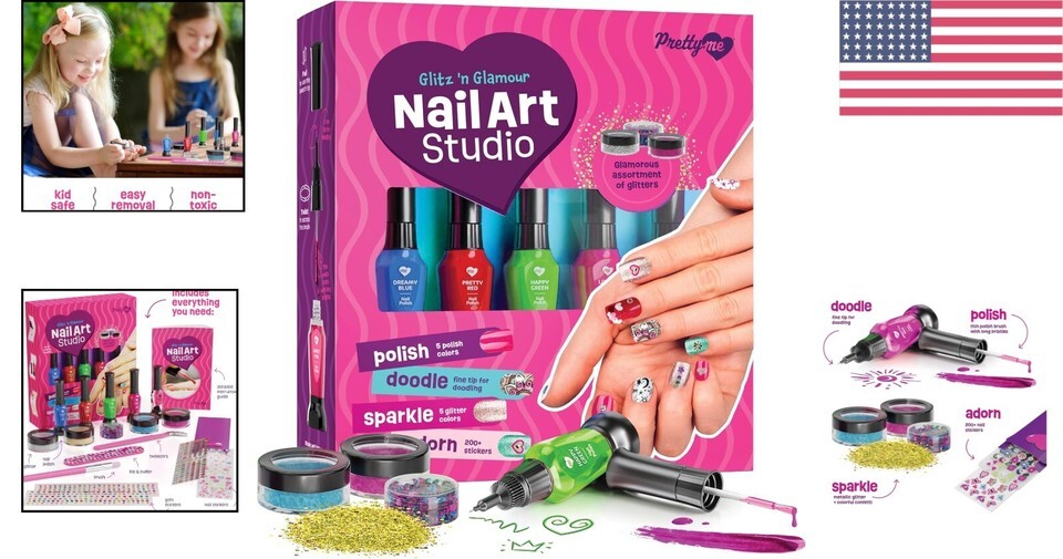 Complete Kids Nail Art Set with Polish, Glitter & 200+ Stickers - Perfect Gift