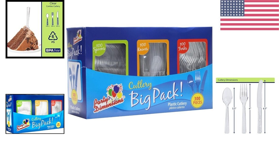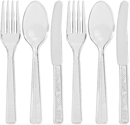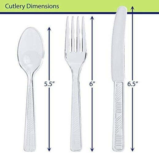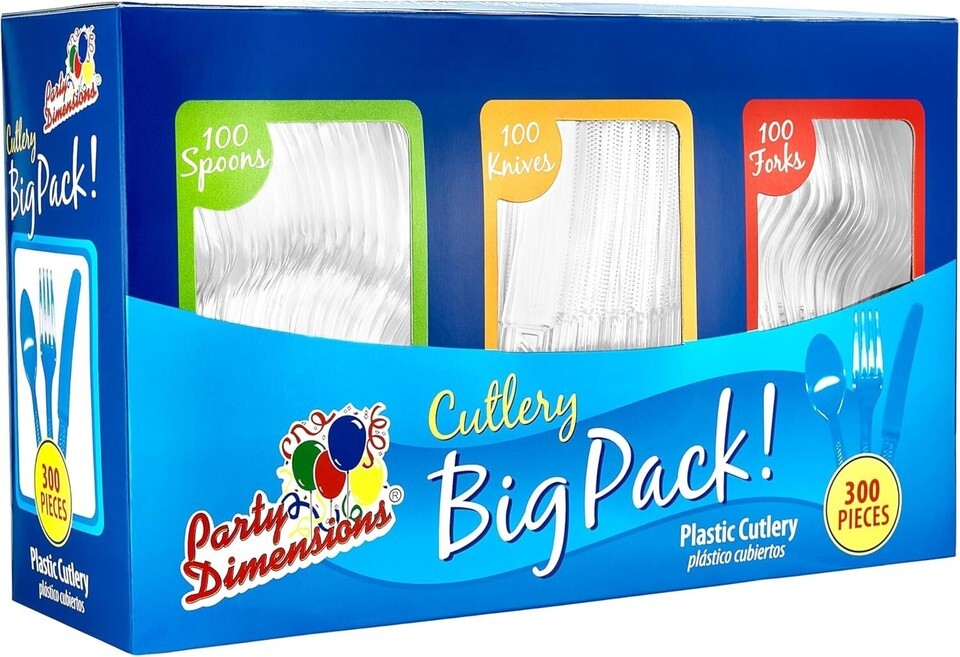VALUE PACK: Contains 300 count clear disposable cutlery ? 100 spoons, 100 forks, 100 knives.