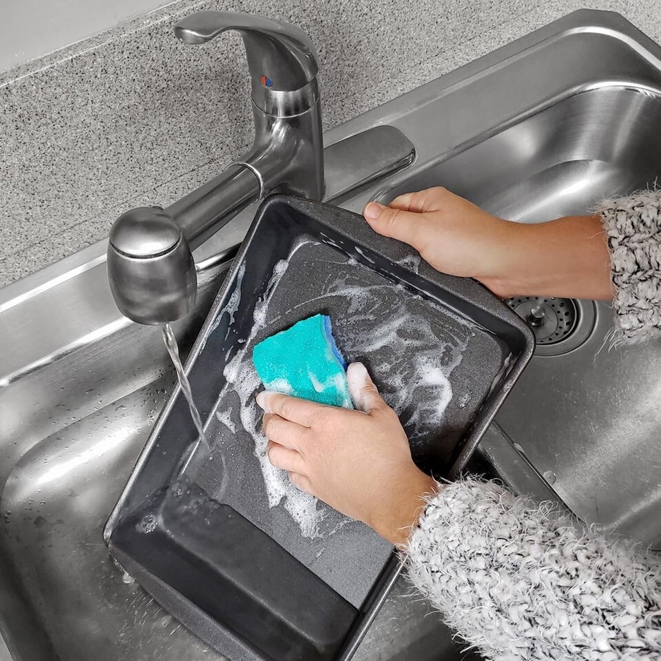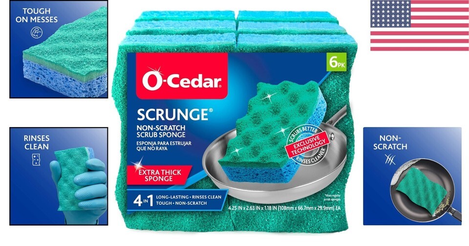 NON-SCRATCH: Unique non-scratch double-sided scrubbing surface, perfect for nonstick pans and cookware.