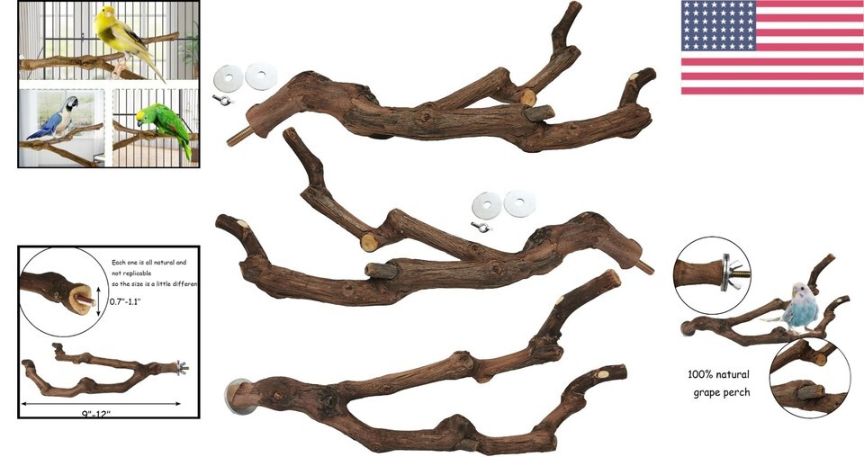 NATURAL GRAPEVINE: Each of our bird perches is crafted from authentic, wild grapevines, ensuring a safe and natural standing space for your cherished pets. Embrace the uniqueness of nature, as every perch is distinctly shaped and sized, bringing an element of individuality to your bird?s environment.